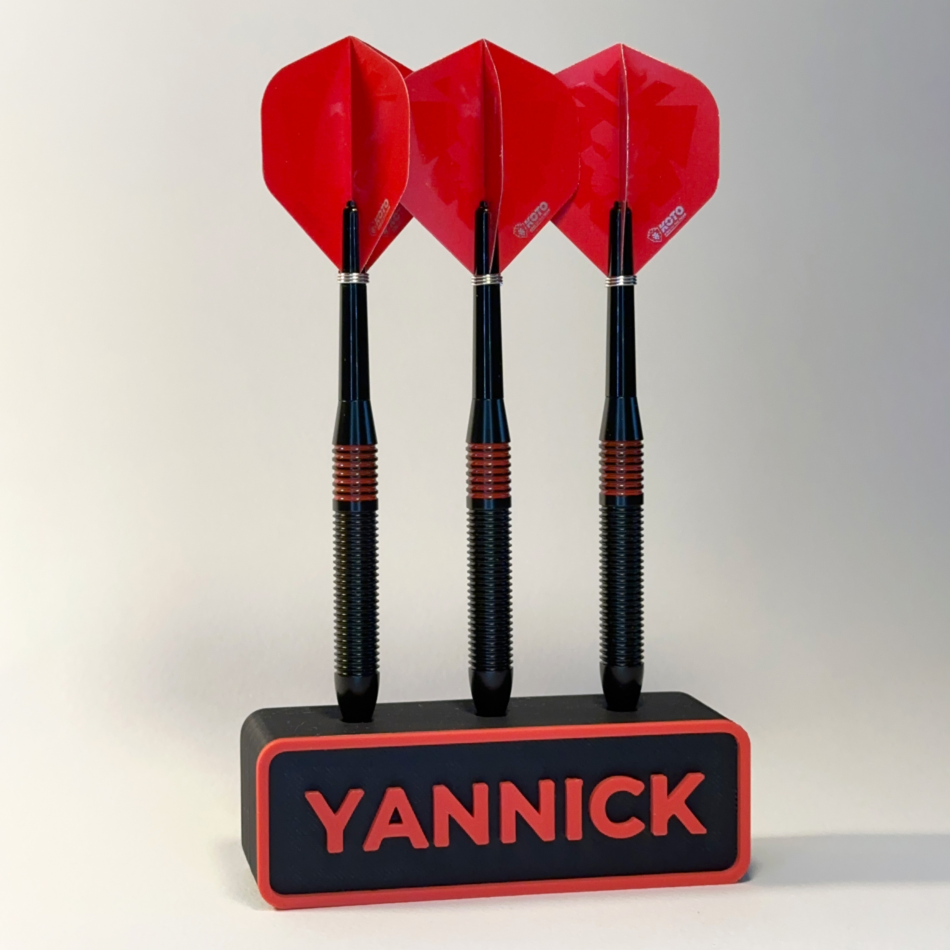 Dieser robuste und hochwertige Dart-Halter ist das perfekte Geschenk für jeden Dartspieler und ermöglicht dir die Anbringung an der Wand oder die Aufstellung auf einer Ablage. Die Individualisierung mit deinem Namen garantiert dir einen maximalen Wiedererkennungswert!