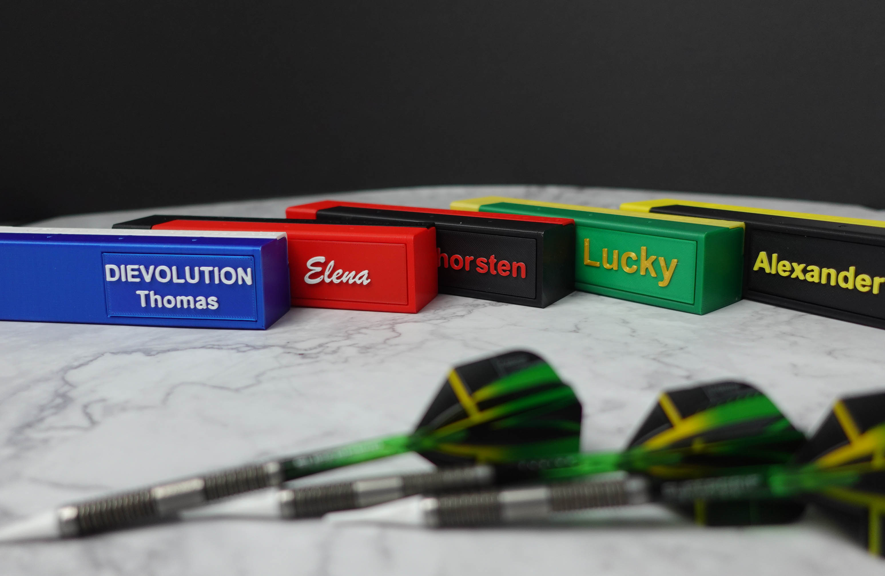 Deine Flights sind geschützt im Flighthalter untergebracht und können einzeln entnommen werden. Unsere brandneue Designentwicklung ist einzigartig und durch die Möglichkeiten des 3D-Drucks können wir dir dein individuell angepasstes DDC 1.0 erstellen.