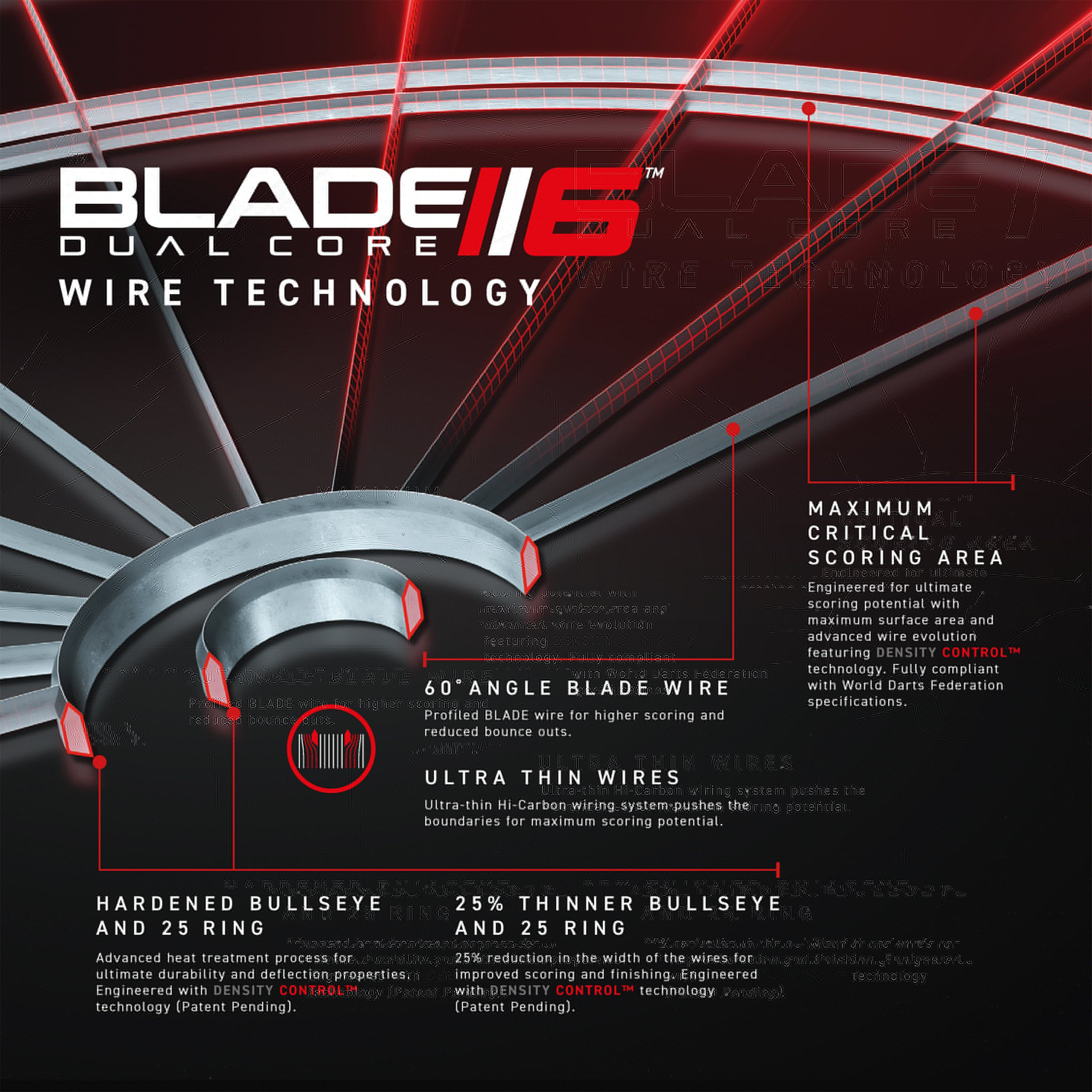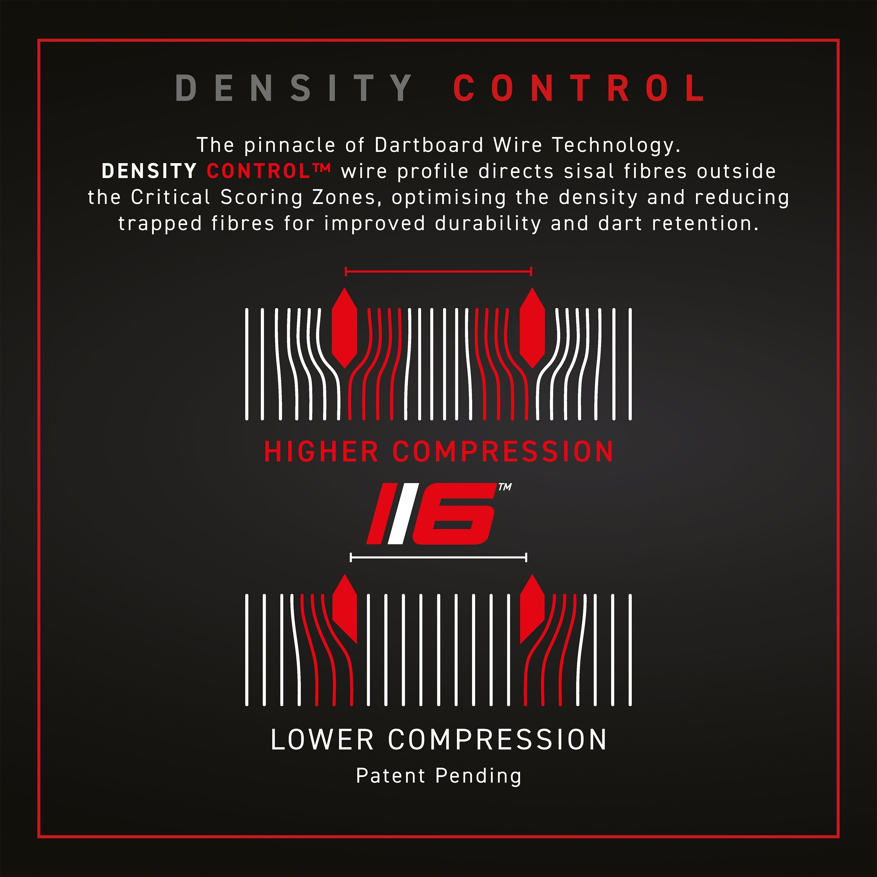 Beim Blade 6 Dual Core kommt die von Winmau patentierte Dual-Core Technologie zum Einsatz. Die zwei unterschiedlich stark gepressten Sisalschichten sorgen für eine nahtlose, gut sichtbare Spieloberfläche und für höhere Punktestände. Der innere Kern ist besonders dicht gepresst. Dadurch erhöht sich der Widerstand unterhalb der Oberfläche, wodurch überschüssige kinetische Energie absorbiert und die Haltbarkeit des Dartboards verbessert wird. Die äußere Sisalschicht ist weniger dicht gepresst. Dies sorgt für einen reduzierten Oberflächenwiderstand und damit für ein leichteres Eindringen der Pfeile mit geringer Abprallquote. Lieferung inklusive Check-out Tabelle und Rota-Lock Montageset, zur perfekten Ausrichtung des Boards an der Wand.